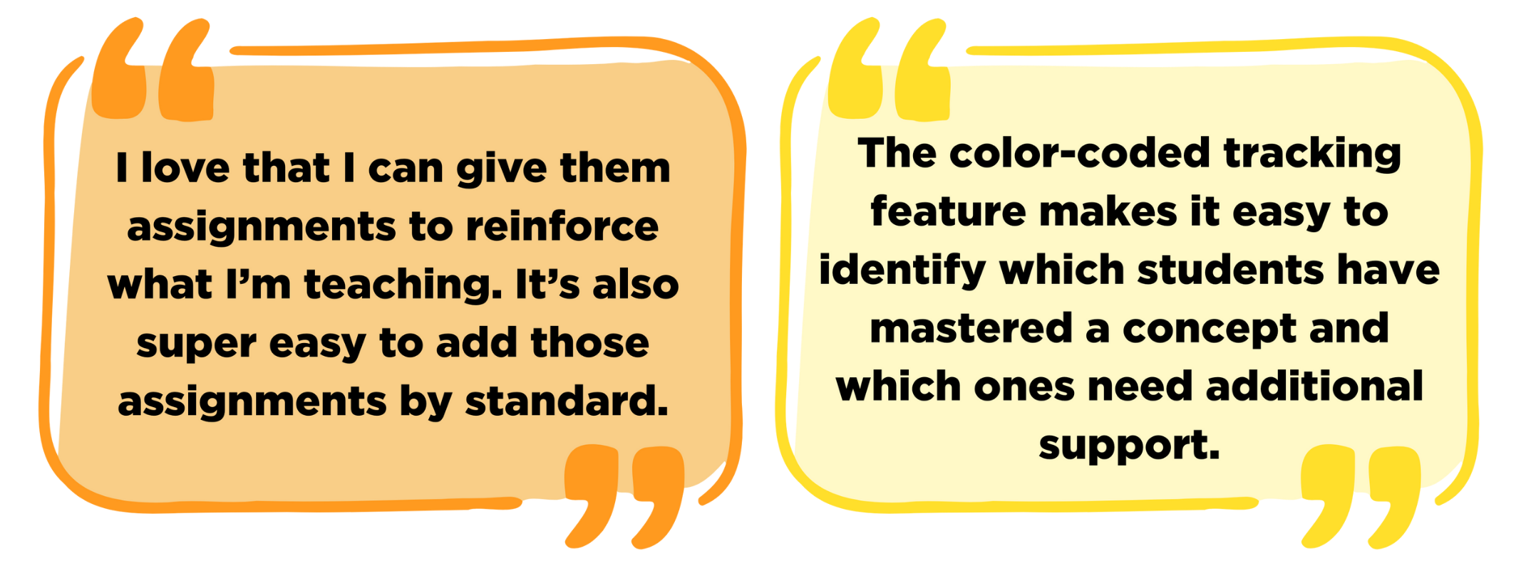 Assignments help you give practice on exactly what you’re teaching, then quickly see who’s got it and who needs more support.