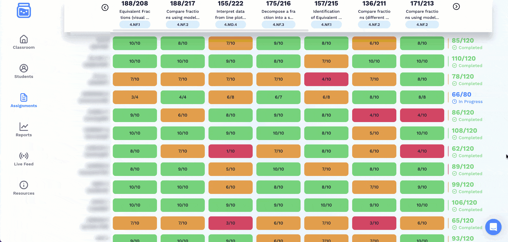 Assignments are aligned to your state standards. Differentiate with ease by assigning skills to the whole class or individual students.